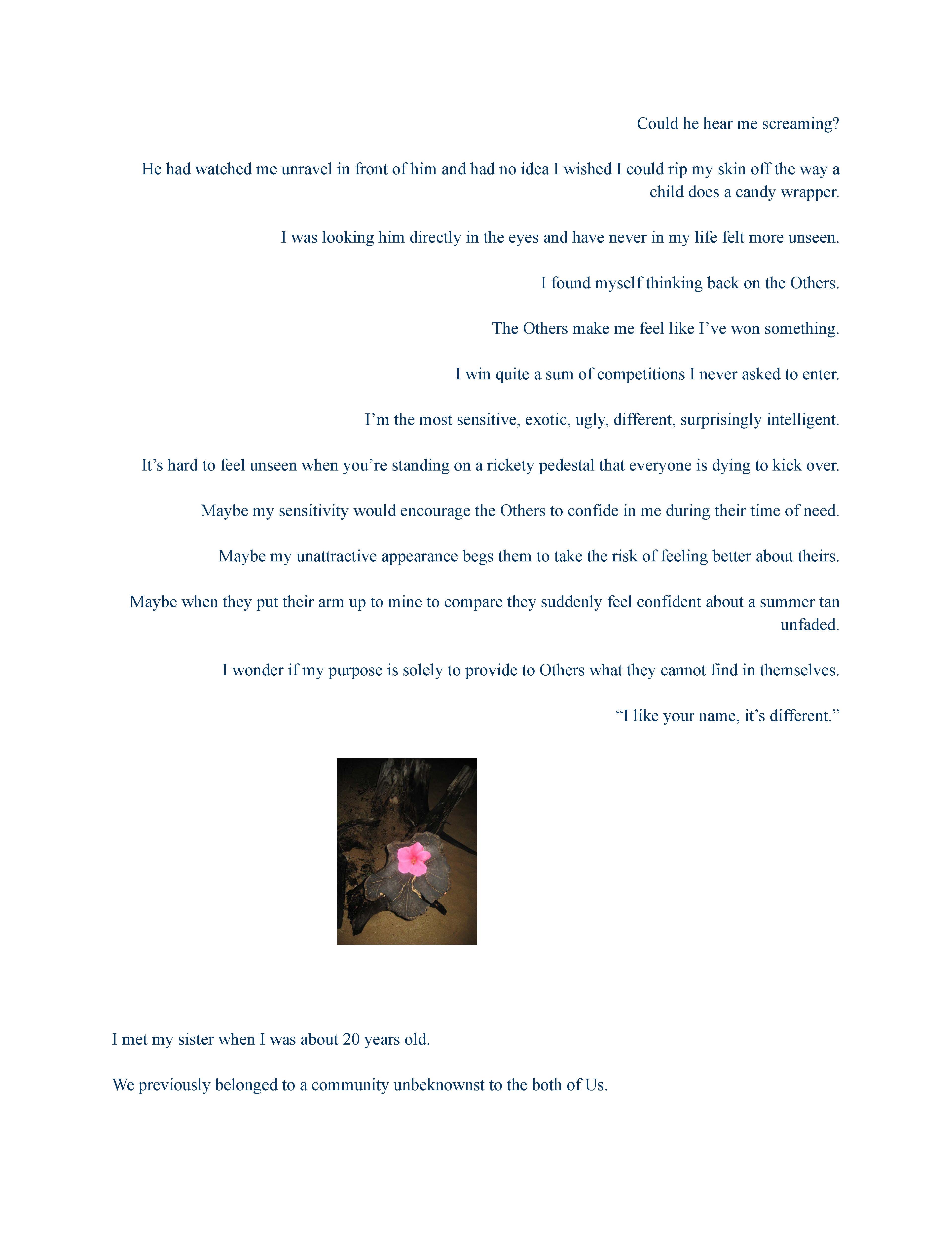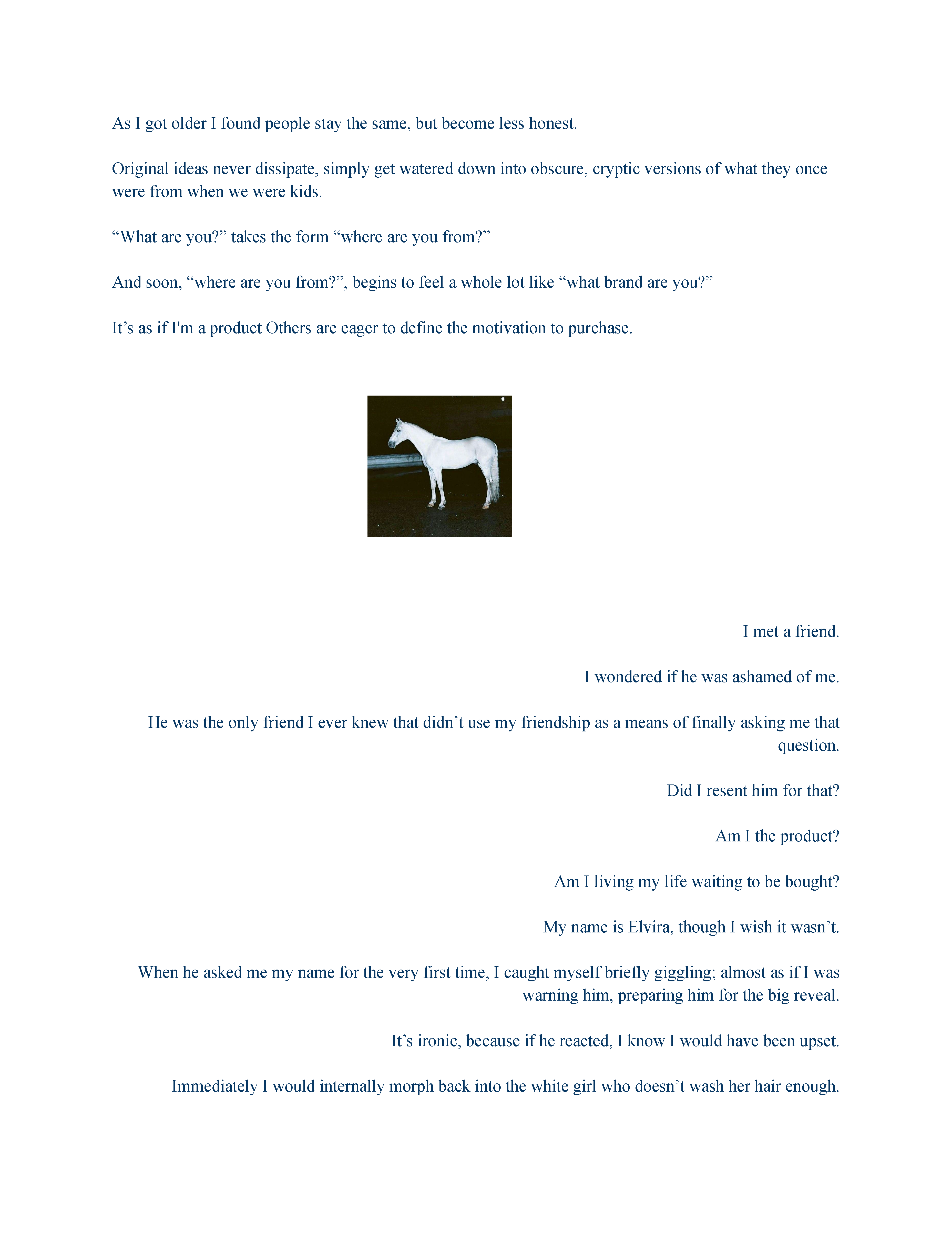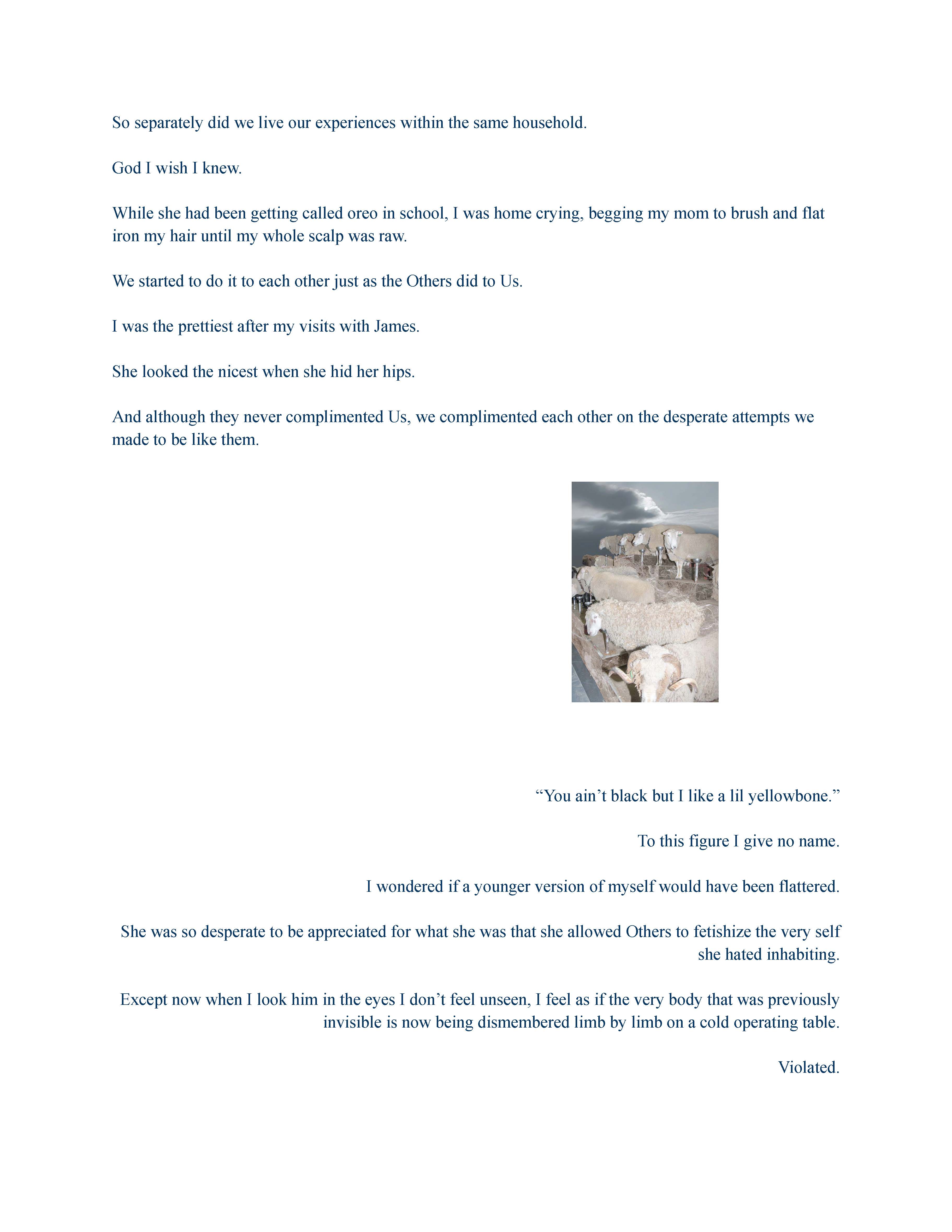 The Suffocating Affair It Is To Be A Woman Who’s Mixed, a non-traditional story form and image curation; illustrating the experience of Elvira, navigating the world as a woman who’s mixed.