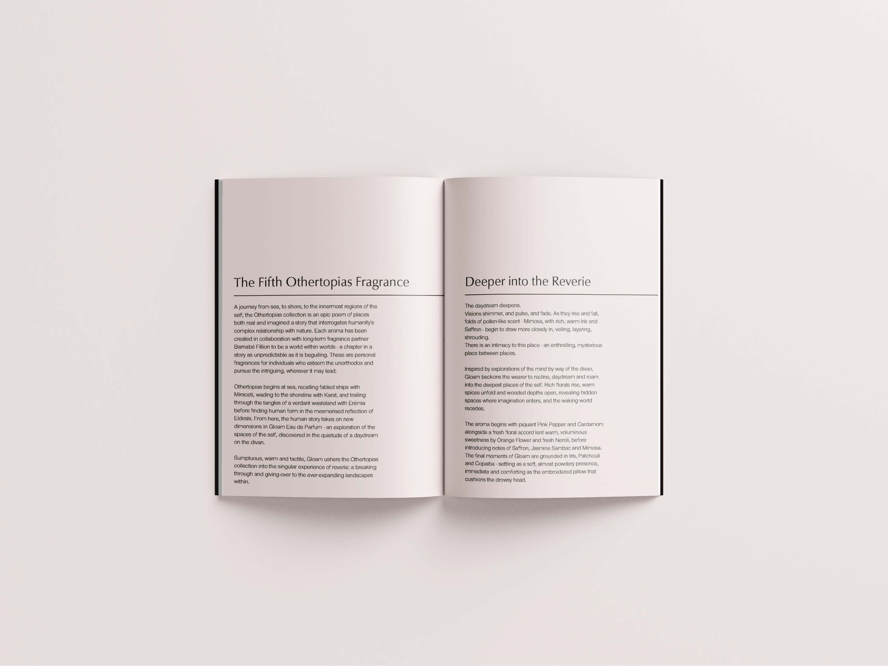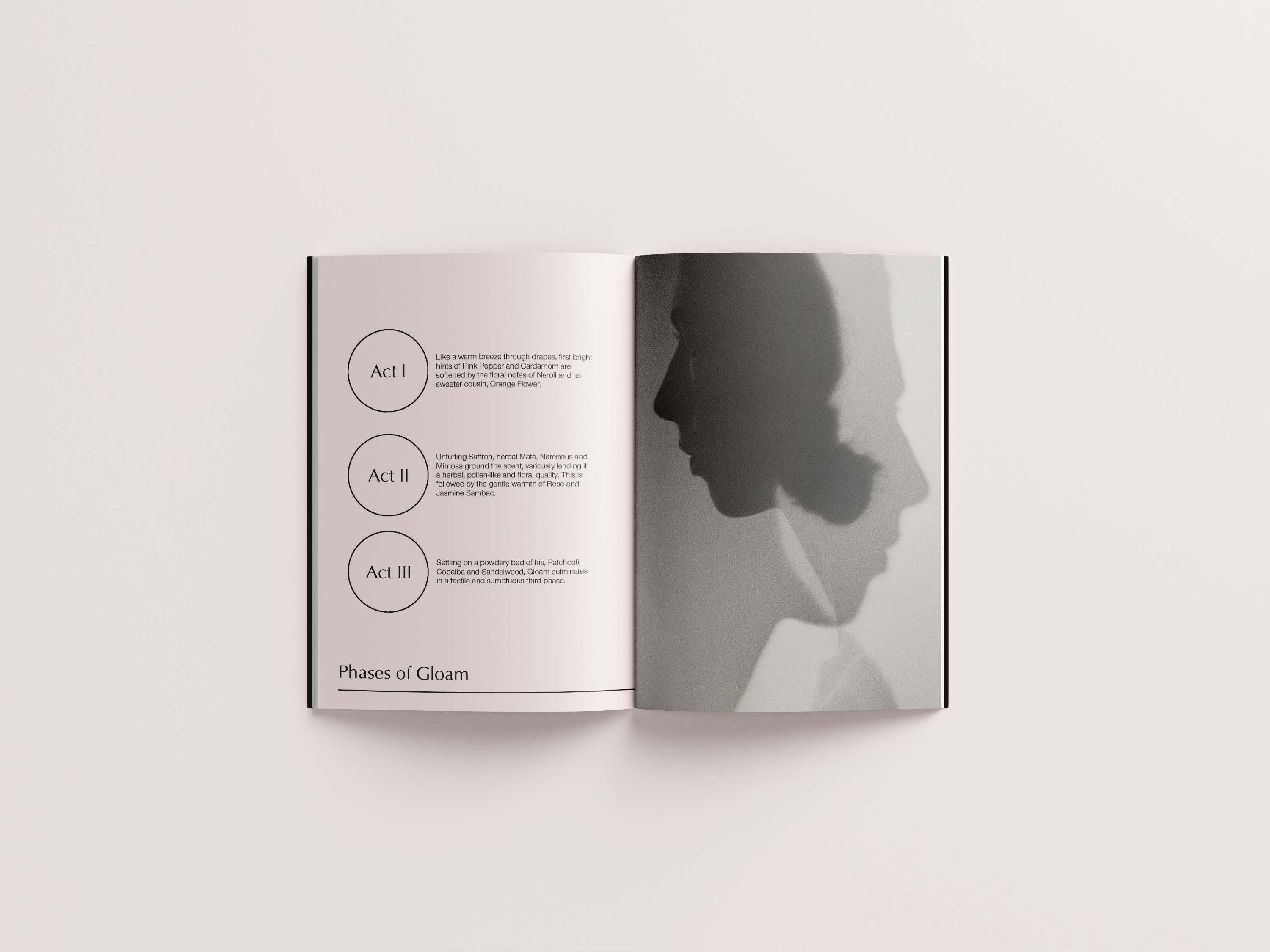 - Below you will find a sendout book made to be paired with the new “Gloam” perfume. This book captures the energy of the new release, as well as display the history of its development and others of its kind.