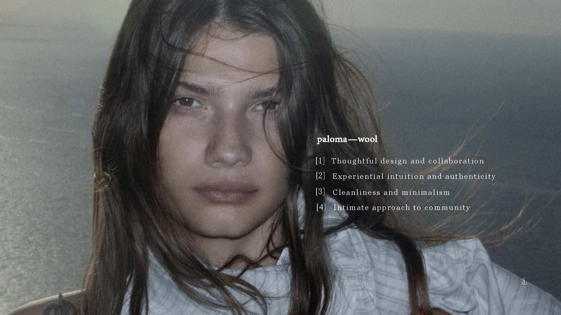 - Paloma Wool has curated a devoted feminine audience dedicated to a romanticist identity. My intention is to expand how this audience can interact with the brand without sustainability-diminishing retail expansion. Paloma Wool is freedom to roam, and could be executed with events; accessible through a location-based app experience.