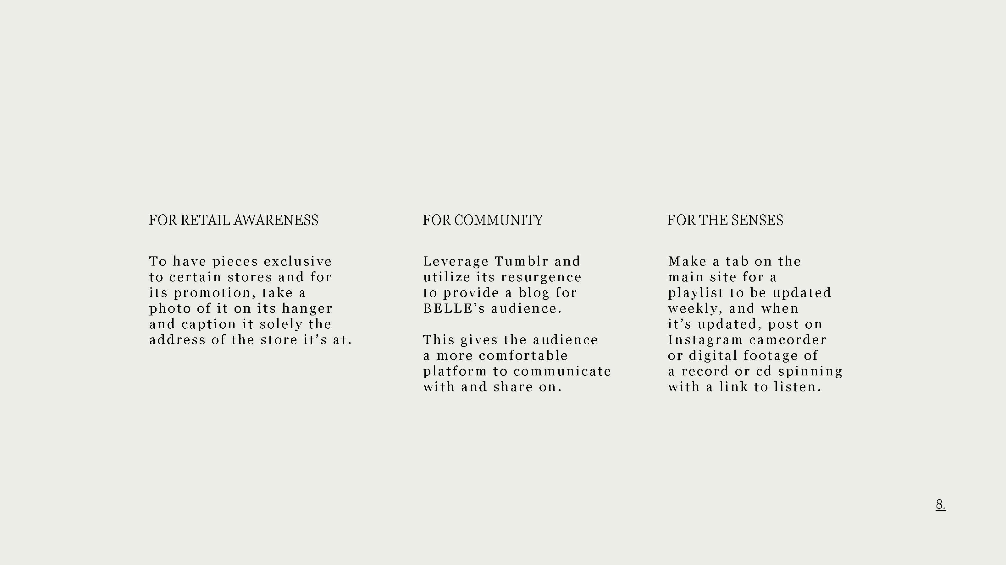 - The following deck is a former proposal to BELLE ANNA’s team (previously BELLE) as a means of demonstrating my adaptability to their brand identity and ethos. Included is a variety of the label’s strengths, potential for growth, opportunities, and copy demonstration.